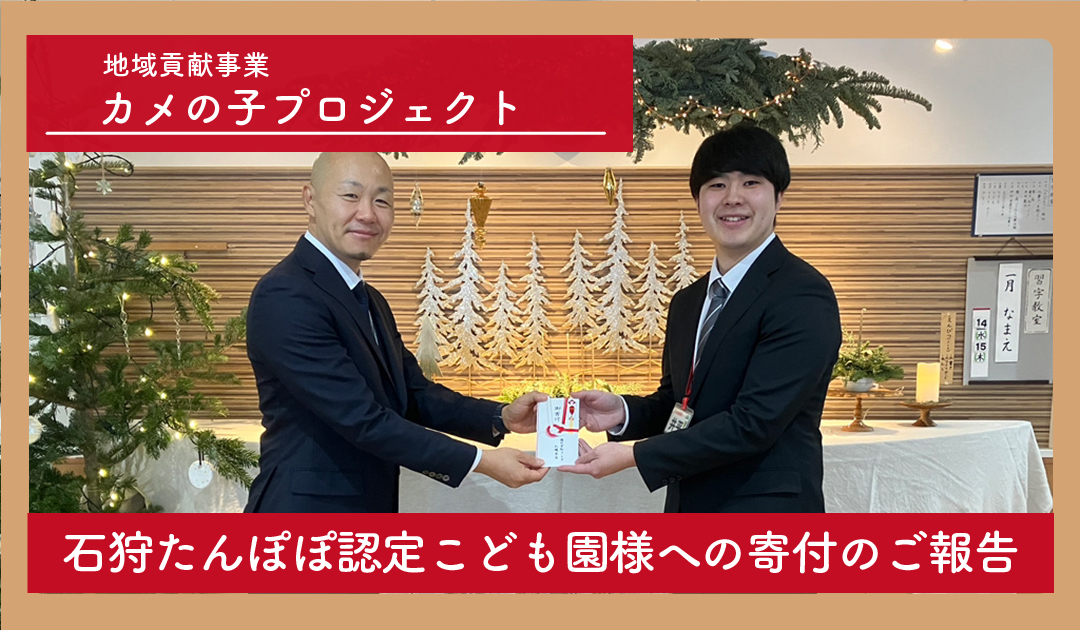 今回は、地域貢献事業【カメの子PJT】の一環として、石狩たんぽぽ認定こども園様へ寄付を行いました。