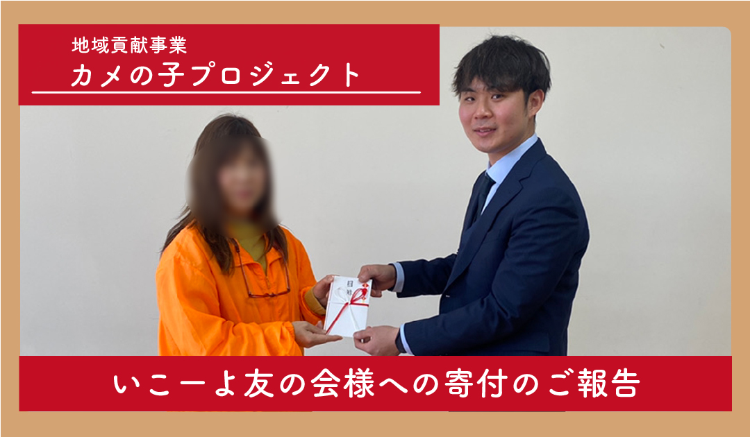 今回は、地域貢献事業【カメの子PJT】の一環として、特定非営利活動法人 いこーよ友の会様へ寄付を行いました。