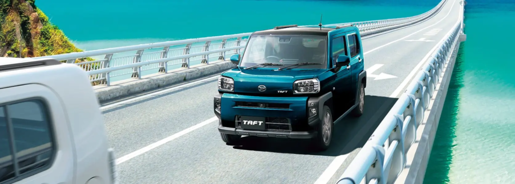 タフトは、ダイハツが展開する軽自動車のクロスオーバーSUVです。四角いボディと大型ガラス屋根が特徴で、街乗りからアウトドアまで幅広く使えます。